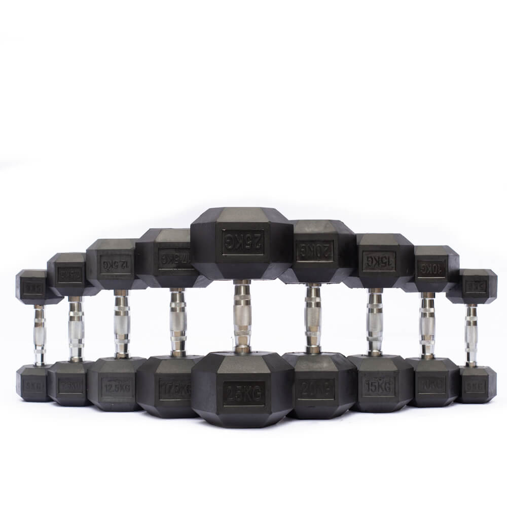 30KG Rubber Hex Dumbbells – Pair