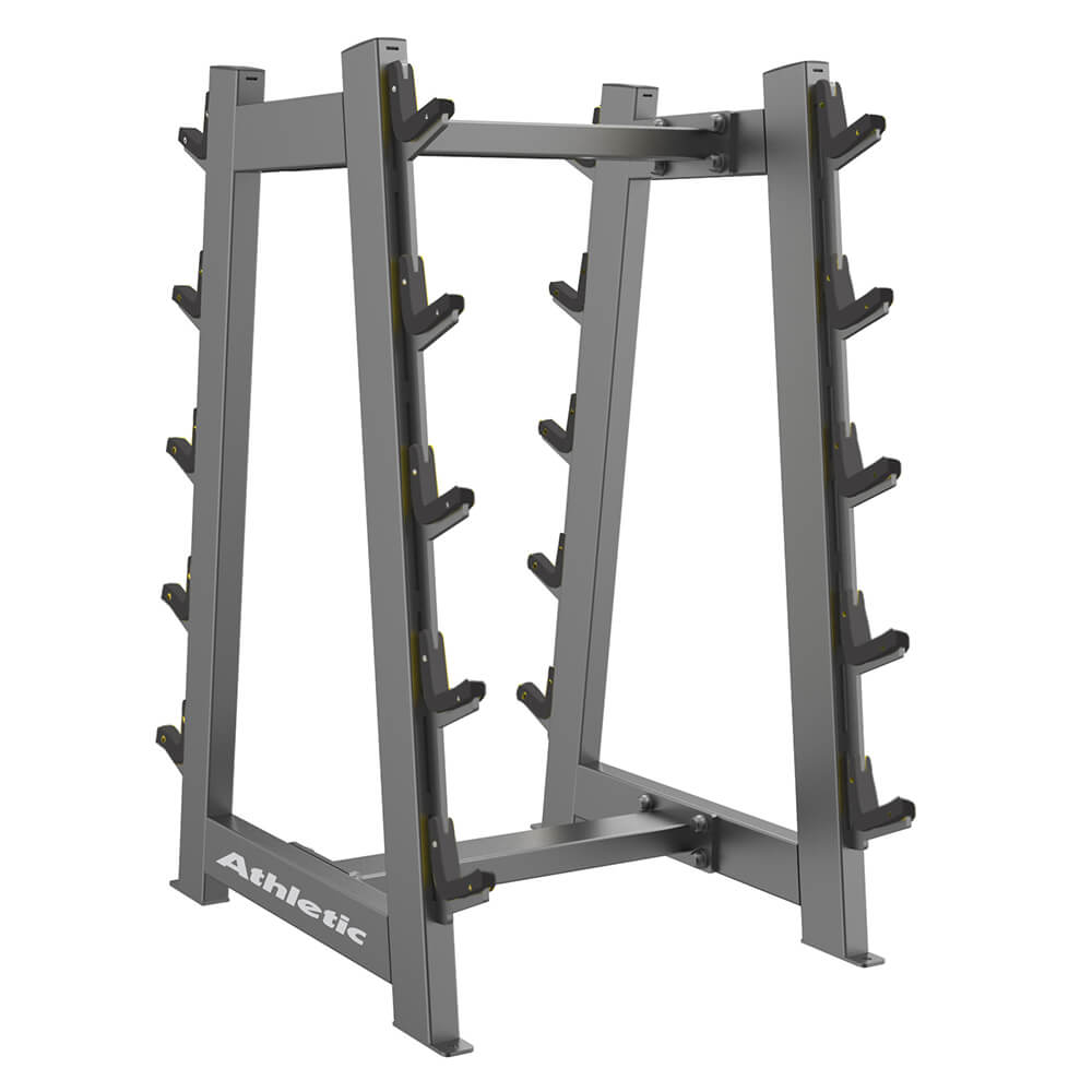 THE BARBELL RACK IS AN ELEGANT, ROBUST AND PRACTICAL ARTICLE DESIGNED TO MAKE YOUR GYM OR FITNESS SPACE BETTER ORGANIZED. ACCOMMODATES UP TO 8 WEIGHT BARS. HAVE THE ROBUSTNESS AND DURABILITY THAT ALL FORCE LINE EQUIPMENT HAS. THE URETHANE PROTECTORS HELP TO PROTECT THE FINISH OF THE SUPPORT AND THE BARS. VERTICAL FRAME DESIGN PROVIDES CONVENIENCE FOR EASY BAR ACCESS. STRUCTURE WITH ANTICORROSIVE TREATMENT BY MEANS OF PHOSPHATING BATHS, ELECTROSTATIC POLYESTER PAINTING AND WITH DOUBLE LAYER WITH OVEN FIXATION AT 200OC.