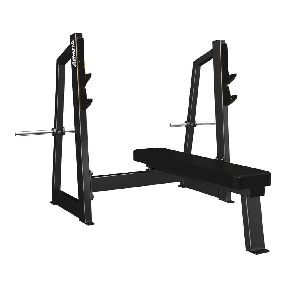 WITH A MODERN DESIGN AND ATTENTIVE TO DETAILS, THE OLYMPIC FLAT BENCH HAS FINISHING CAPS INJECTED IN FLEXIBLE PVC, PREVENTING THEM FROM COMING LOOSE FROM THE TUBE AND LEAVING THE EQUIPMENT UNFINISHED, AND IN ADDITION TO IMPROVING THE AESTHETIC APPEARANCE, IT ALSO PREVENTS CORROSION. ANTICORROSIVE TREATMENT THROUGH PHOSPHATIZATION BATHS, ELECTROSTATIC PAINTING IN DOUBLE LAYER POLYESTER AND FIXATION IN AN OVEN AT 200°C. •ORTHOPEDIC FOAM PADDING INJECTED INTO A MOLD SPECIFICALLY DESIGNED FOR FITNESS. •UPHOLSTERY BACK CABLING WITH DOUBLE LAYER IN ROTO MOLDED POLYETHYLENE, PREVENTING BREAKAGE. •SUPPORT OF THE EQUIPMENT ON THE INJECTED PVC FLOOR, RAISING THE STRUCTURE, AVOIDING CONTACT BETWEEN THE BASE AND THE FLOOR, FACILITATING CLEANING AND PREVENTING CONTACT WITH MOISTURE.