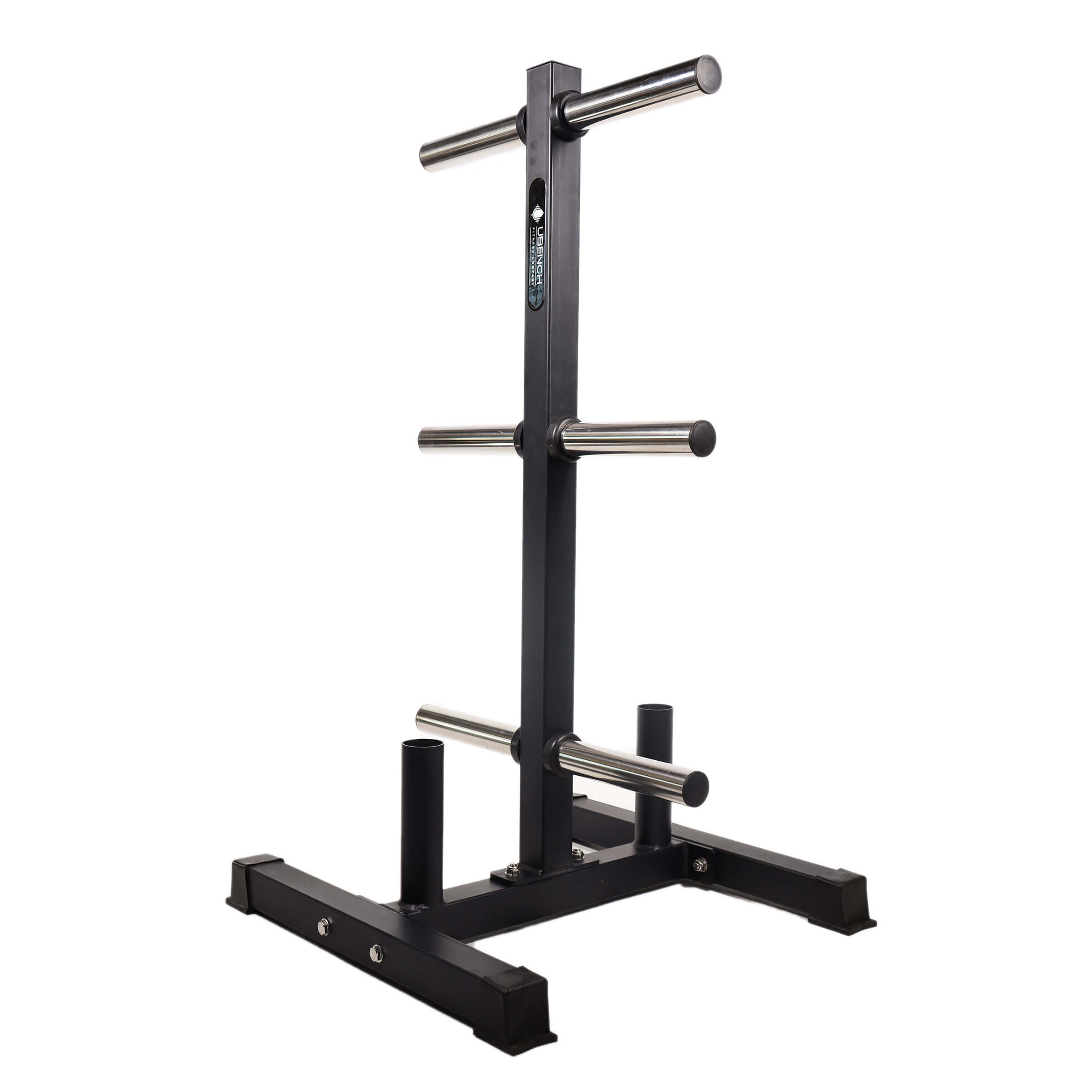 THIS SLEEK AND STYLISH US206 OLYMPIC WEIGHT AND BAR RACK IS THE IDEAL SOLUTION FOR BOTH STORING AND DISPLAYING YOUR OLYMPIC WEIGHTS, WITH TWO BAR STORAGE SPACES. WITH A COMPACT DESIGN, THIS WEIGHT AND BAR RACK ENABLES YOU TO MAKE THE MOST OF YOUR FLOOR SPACE, AND HAS A STURDY CONSTRUCTION TO ENSURE SAFE AND SECURE STORAGE FOR YOUR WEIGHTS AND BARS. MADE FROM HIGH-QUALITY MATERIALS, THE US206 ALSO BOASTS ANTI-SLIP FEET FOR UNRIVALLED STABILITY AND CAN BE EASILY MOVED AS REQUIRED.